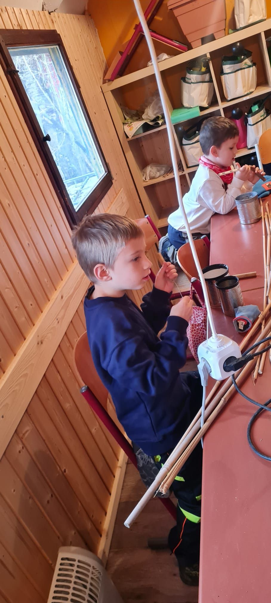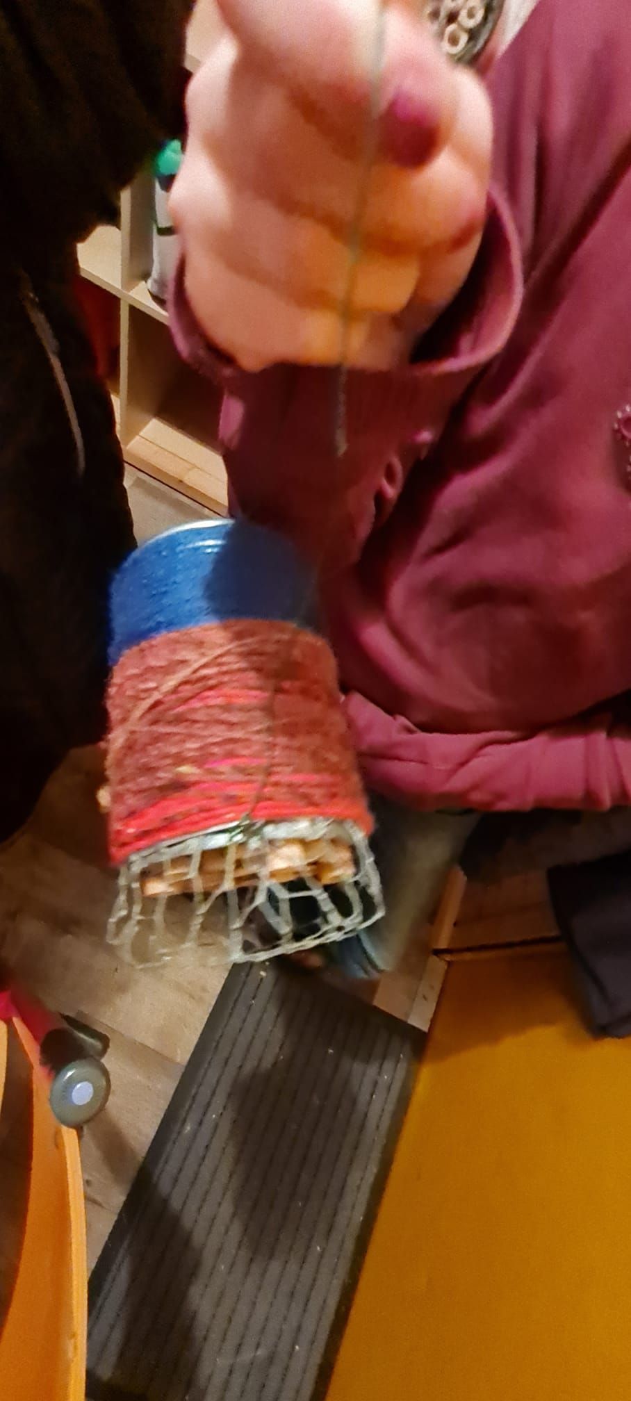 Dann haben wir noch Draht zum Aufhängen angebracht und schon waren wir fertig.