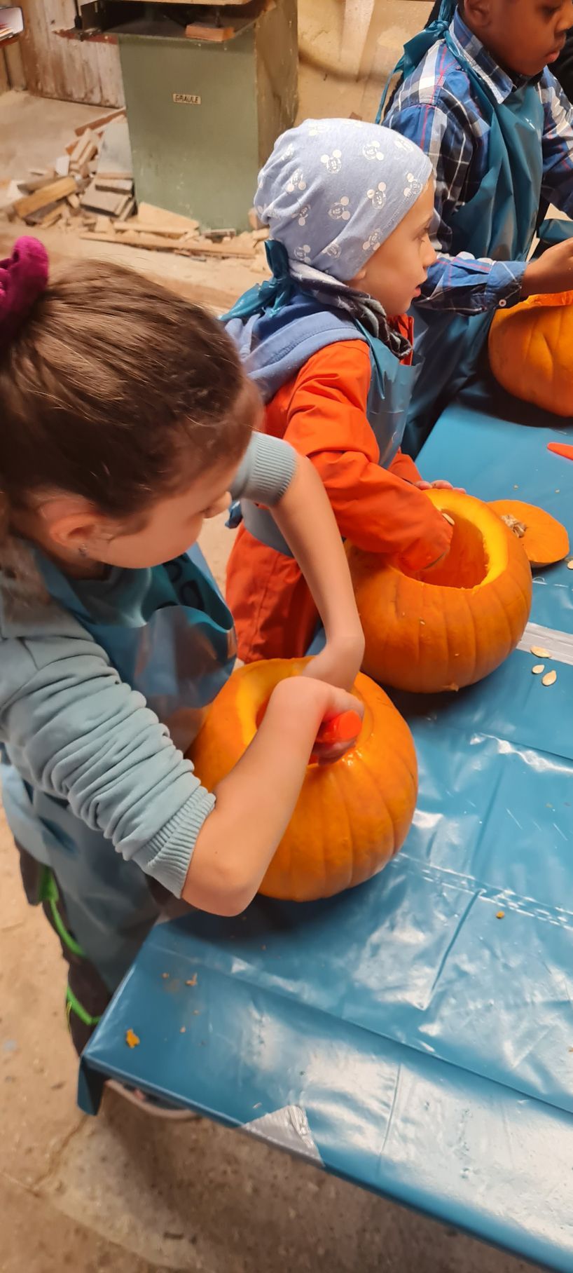 Die Eltern waren sehr überrascht von den Kürbissen und haben sich sehr gefreut, was ihre Kinder heute tolles gemacht haben. Es war für uns eine tolle Erfahrung wie selbstständig die Kinder zum Teil schon ihre Kürbisse bearbeiten konnten. Echt toll.