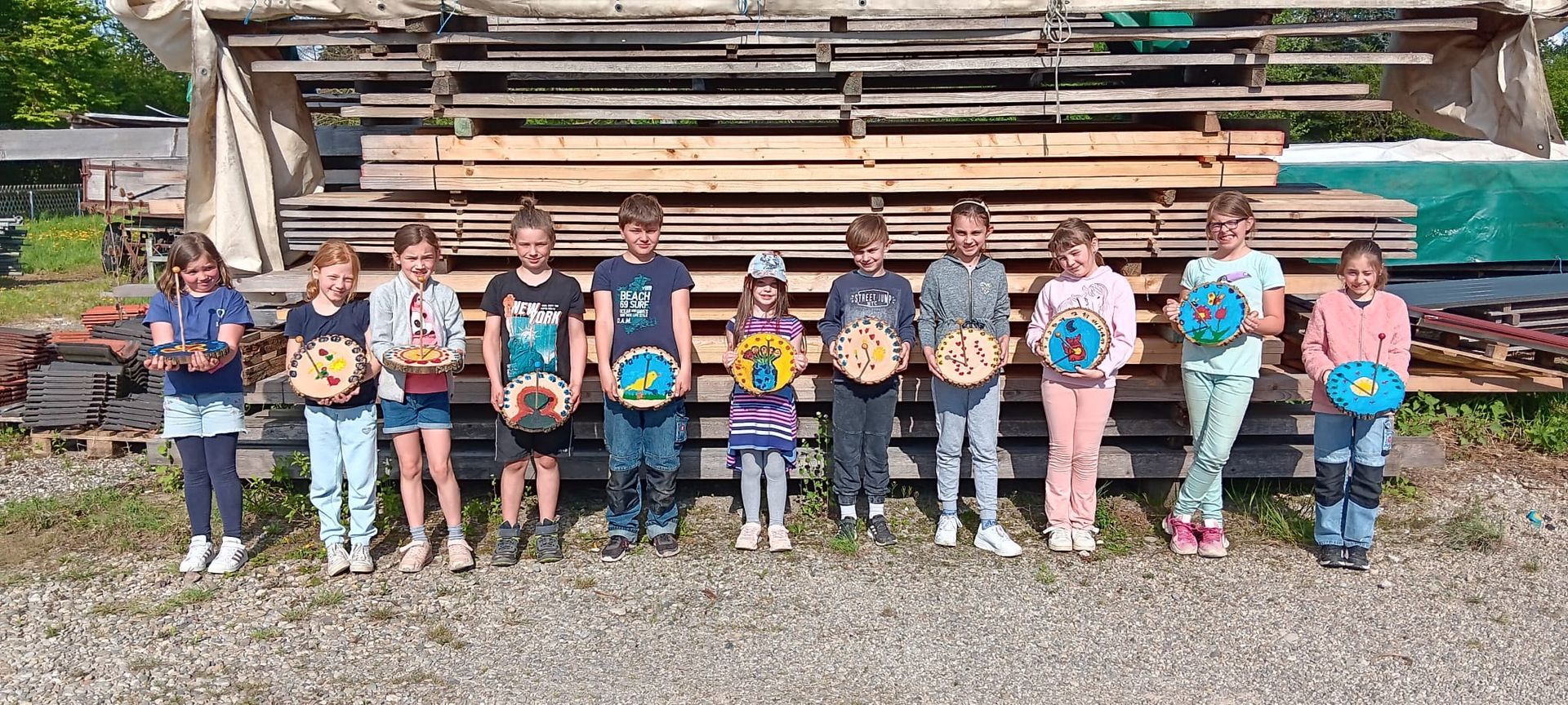 Am 13. April fand wieder unser Osterbasteln mit Kindern statt. Diesmal wollten wir aus einer Baumscheibe eine Sonnenuhr basteln.