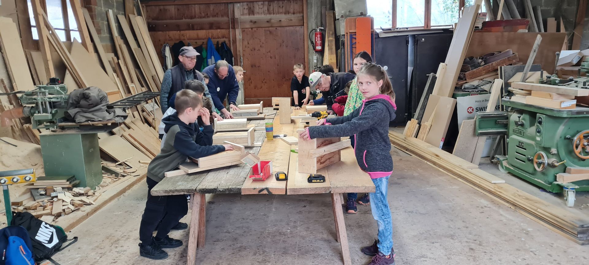 Am 03. April haben wir wieder ein Osterbasteln veranstaltet. 10 Kinder waren angemeldet und wir haben gleich drauf los geschraubt. Die Kinder sind ja sooo schnell. Weil deshalb noch so viel Zeit war, haben wir kurzer Hand noch Farben geholt und Fledermausschablonen gemacht und die Kästen angemalt. Lauter kleine Kunstwerke sind das wieder geworden.