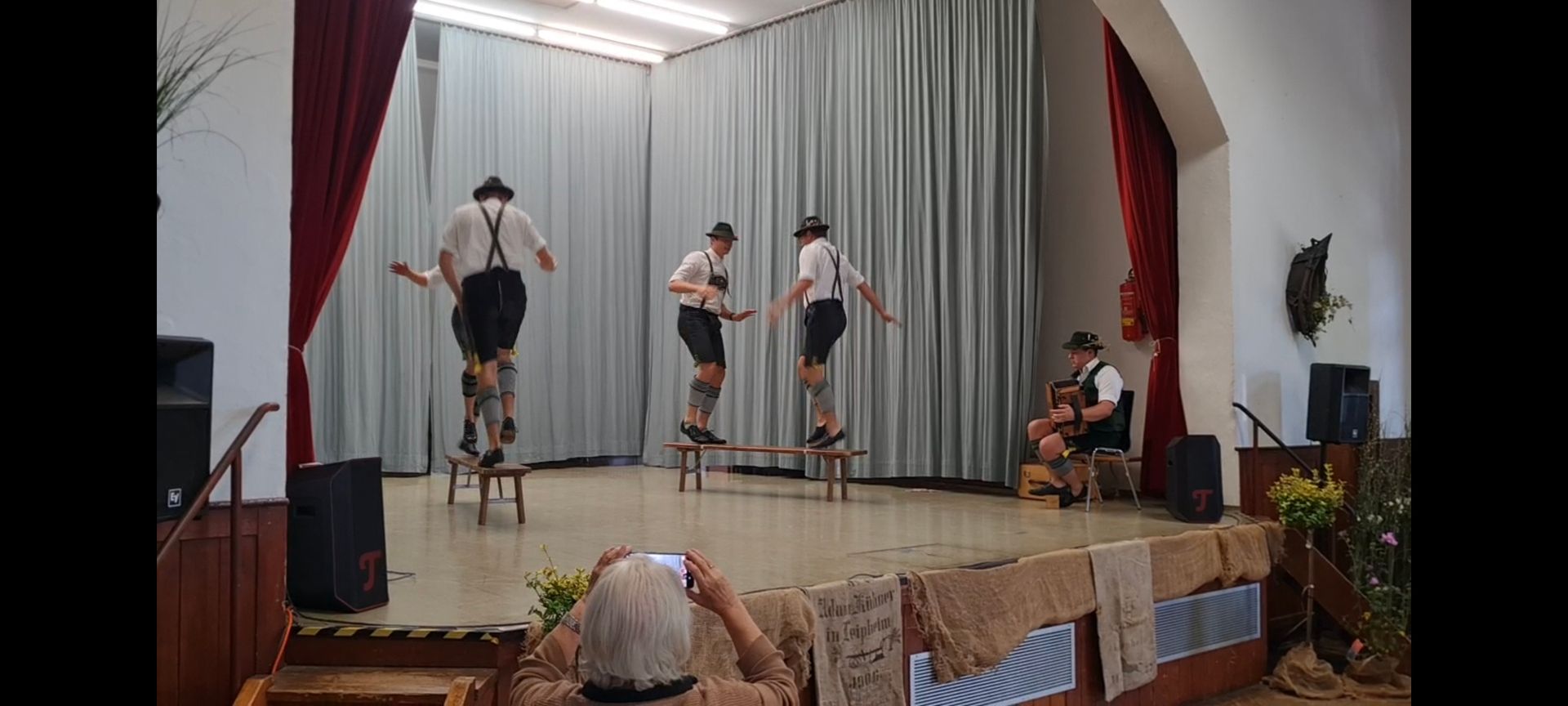 Nach einer kurzen Pause kamen dann die Schuhplattler der Freiwilligen Feuerwehr Riedhausen. Zur Unterstützung waren die Damen vom Trachtenverein Burgau dabei. Mit ihnen wurde nach altem Brauchtum getanzt. Es war richtig schön. Aber zünftig gings dann weiter, als die Plattler mit Bänken geplattlt haben. Richtig cool.